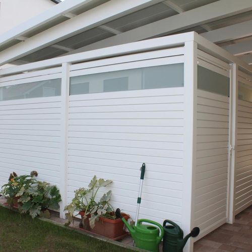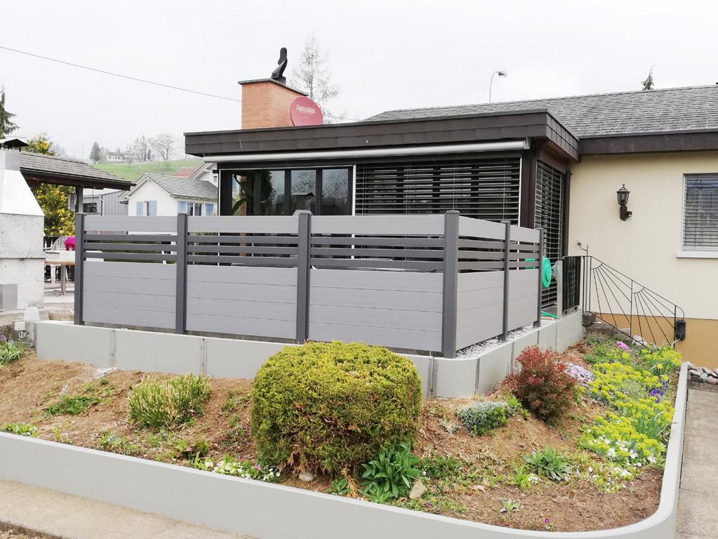 Unser Aluminium-Sichtschutz wird individuell nach Ihren Vorgaben gefertigt – millimetergenau, ganz nach Ihrem Bedarf. Wählen Sie aus einer Vielzahl von RAL-Farben Ihre Wunschfarbe – pulverbeschichtet für eine edle Optik und dauerhaften Schutz.