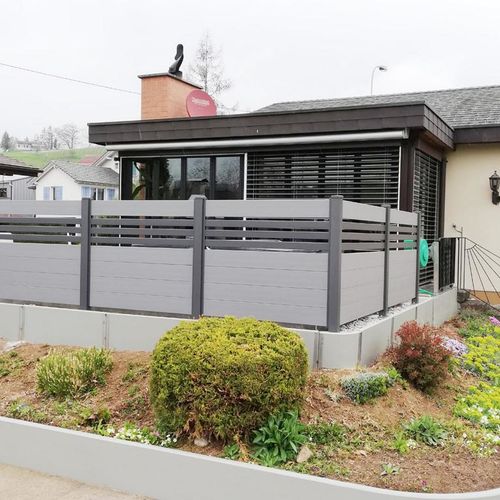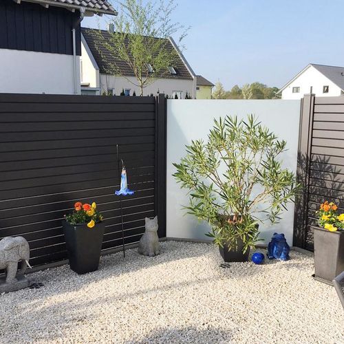 Unser Aluminium-Sichtschutz wird individuell nach Ihren Vorgaben gefertigt – millimetergenau, ganz nach Ihrem Bedarf. Wählen Sie aus einer Vielzahl von RAL-Farben Ihre Wunschfarbe – pulverbeschichtet für eine edle Optik und dauerhaften Schutz.